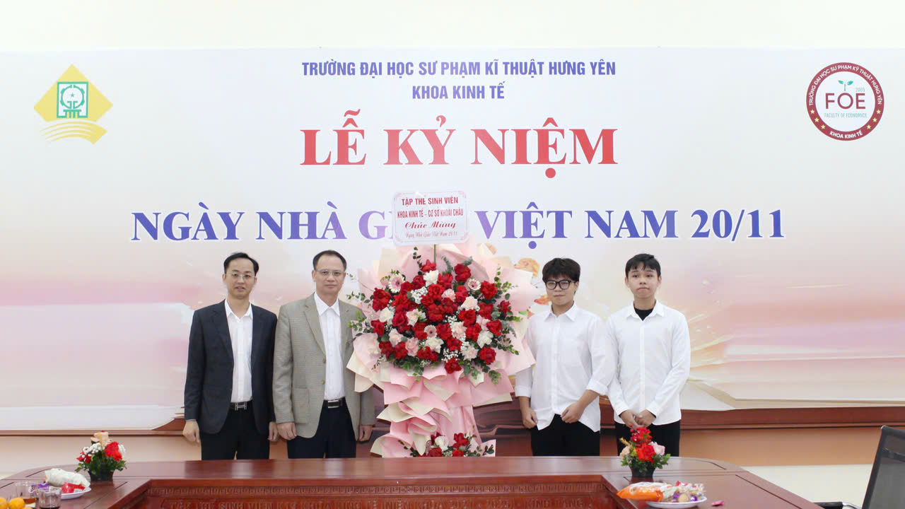 Hướng tới tri ân đội ngũ nhà giáo và ghi nhận những đóng góp quan trọng trong sự nghiệp giáo dục, sáng ngày 20/11/2025, Khoa Kinh tế, Trường Đại học Sư phạm Kỹ thuật Hưng Yên đã tổ chức Lễ kỷ niệm Ngày Nhà giáo Việt Nam 20/11 trong không khí trang trọng và ấm áp. Chương trình là dịp để cán bộ, giảng viên và sinh viên cùng nhìn lại những kết quả đạt được trong năm học, đồng thời tôn vinh các thầy cô đã có nhiều đóng góp nổi bật cho công tác đào tạo và nghiên cứu khoa học của Khoa.