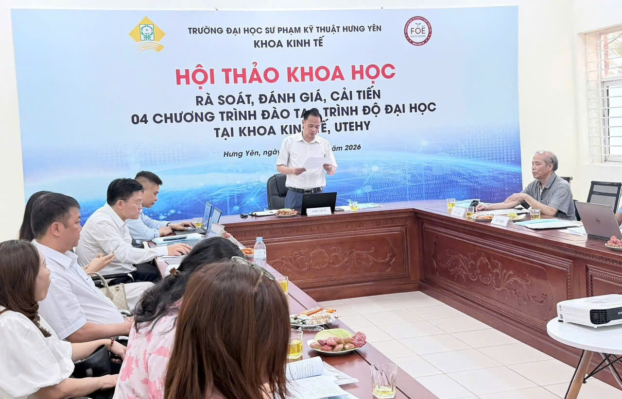 Ngày 14/4/2026, Khoa Kinh tế – Trường Đại học Sư phạm Kỹ thuật Hưng Yên đã tổ chức thành công Hội thảo rà soát, đánh giá và cải tiến 04 chương trình đào tạo trình độ đại học. Đây là hoạt động có ý nghĩa quan trọng trong lộ trình đổi mới giáo dục, góp phần nâng cao chất lượng đào tạo, đáp ứng yêu cầu ngày càng cao của xã hội và thị trường lao động trong bối cảnh chuyển đổi số và hội nhập quốc tế sâu rộng.